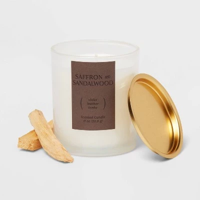 - 11oz Glass Jar Candle with Saffron and Sandalwood Scent
