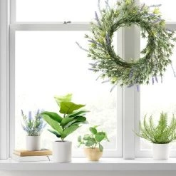 - Artificial fiddle leaf potted plant adds lovely greenery without upkeep