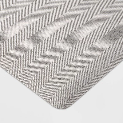 Bring style and comfort to your kitchen flooring with this Herringbone Rust Comfort Mat from Threshold™. This rectangular comfort mat is great to use in your kitchen, laundry room, in front of your standing desk or any other high-traffic place. It features a light gray herringbone design for classic style. This floor mat with a flat pile profile provides extra comfort while standing on hard floors, and is easy to wipe clean.