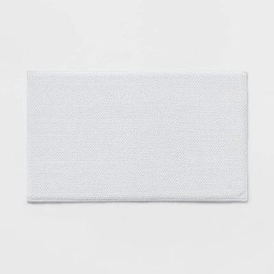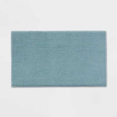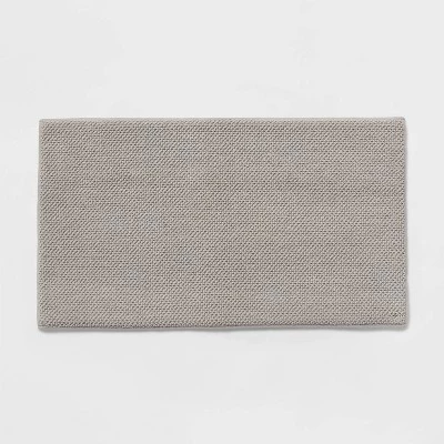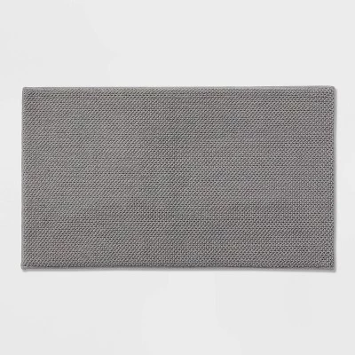 Give a luxurious spa-like touch to your bathroom with this Performance Plus Cotton Memory Foam Bath Rug from Threshold™. The rectangular bath mat features a lightweight woven construction in a textured solid color to effortlessly complement your bath space. It’s made from 100% cotton and memory foam, which makes your feet comfortable when standing on it and absorbs moisture from your wet feet to keep your space clean and dry.