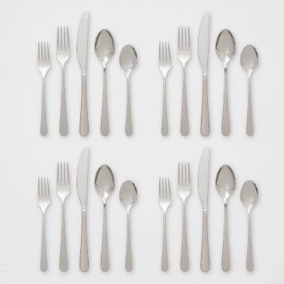 Impress your dinner guests with the bright design of this Stainless Steel Harrington Mirror Silverware Set from Threshold™. This stylish silverware set comes with service for four, including four each of dinner forks, salad forks, knives, dinner spoons and teaspoons, to meet all your serving needs for everyday family dinners or hosting a dinner party. These stainless steel utensils have a silver mirror finish for a classically modern look that will coordinate easily with any tableware or decor.
