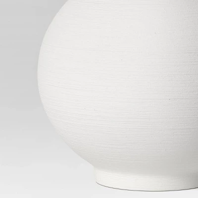 Elevate any table display with this Ceramic Round Textured Vase from Threshold™. This round ceramic vase features a white textured finish to easily coordinate with any decor. The small round neck makes it perfect for displaying a few real or artificial blooms or dried stems. Set it atop your mantelpiece, console table, sideboard or shelf with other accent pieces to decorate your space.