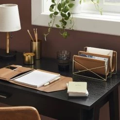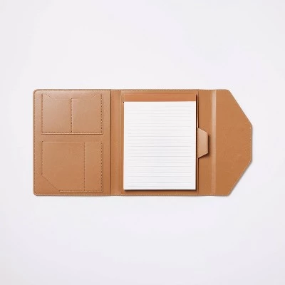 Embark on a journey of organization and refinement with this Faux-Leather Padfolio with Pockets and 80 Page College-Rule Notepad from Threshold™. This brown faux-leather padfolio features a college-ruled notepad with 80 pages along with multiple pockets or compartments for storing documents, business cards, mobile phone and other essentials. Carry confidence wherever you go with this classic organizational accessory, providing a compact and smart solution for essential documents and stationery.