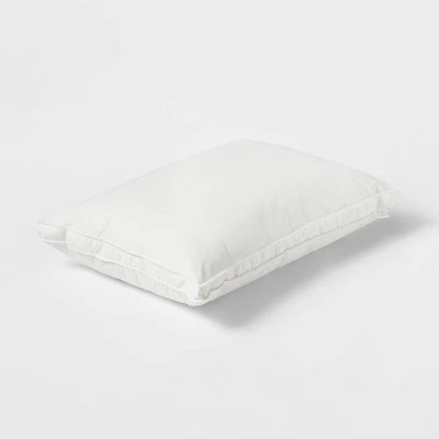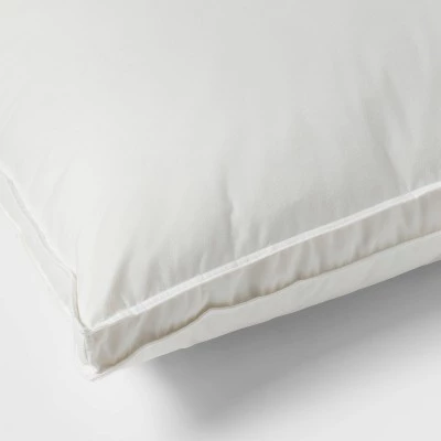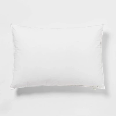 Upgrade your bedroom with the comfort of this Down & Feather Blend Firm Bed Pillow from Threshold™. Crafted from cotton-blend fabric with feather filling, this firm bed pillow offers a comfy surface to lean against whether you’re a side, stomach or back sleeper. Plus, the stain-release, hypoallergenic cover allows for easy cleaning and worry-free sleep.