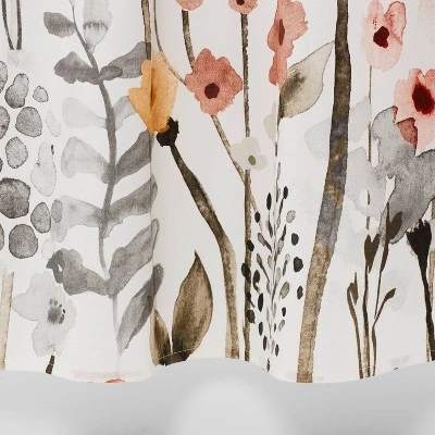 The Floral Wave Shower Curtain from Threshold™ will bring sweet style and soft pops of color to your bath space. A vibrant pattern of floral sprigs rising from the bottom adorn this standard-size shower curtain, bringing a relaxing feel and a soft accent to your bathroom. Made from 100% cotton, the floral shower curtain gracefully encloses your bathtub for added privacy, and it comes with a buttonhole top that allows for easy installation, adding just the right amount of functional style to your bath space.