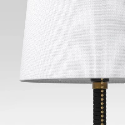 Light up your home in modern style with the Mini Stick Table Lamp with Rattan from Threshold™. This black table lamp features a round brass-finish base complemented by a drum-shape white shade for an amazing look. Designed with a socket pull chain, the mini table lamp has a one-way light setting. Place it on the side table in your sleeping area to brighten up your space.