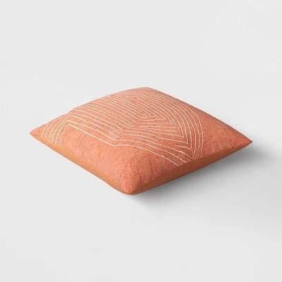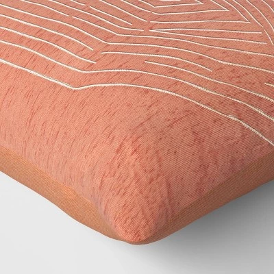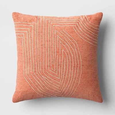 Uplift the aesthetic of your seating arrangement or bedding with this Oversized Geometric Patterned Metallic Embroidered Velvet Square Throw Pillow from Threshold™. This decorative throw pillow is adorned with a metallic geometric pattern on a solid-color velvet backdrop for a chic look. Featuring a soft exterior and padded interior, this 24-inch throw pillow adds plenty of comfort and style to your space.