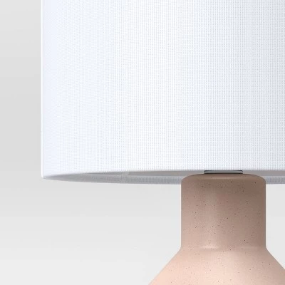 Upgrade your indoor lighting with this Ribbed Ceramic Mini Table Lamp from Threshold™. This mini table lamp features a pink ceramic base with a ribbed design that’s paired with a white drum shade for a modern look. The one-way light setting with a socket push-through switch allows for easy operation. Place it on any side table next to your sofa, on the console table or on a nightstand in the bedroom for an inviting look.