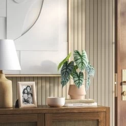Give your decor a welcoming green look with this Small Artificial Dasheen Leaf Plant from Threshold™. This small botanical arrangement showcases a realistic-looking dasheen leaf plant to bring a touch of nature to your space. The artificial construction requires no maintenance, while the speckled ceramic pot in neutral hue pairs well with most decor and allows for easy display. Just place it on the mantel, console or sideboard along with other decor anywhere indoors.
