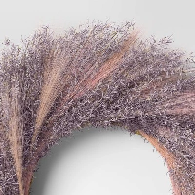 Decorate your indoor space with a gorgeous touch of the outdoors using the Spring Grass Preserved Wreath from Threshold™. This unlit preserved wreath features preserved spring grass in a lavender hue for a charming look. The decorative circular wreath is suitable for wall placement anywhere in your home and makes an easy pairing with other wall decor.