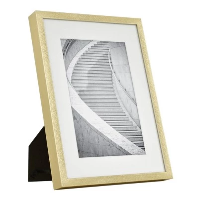 Enhance the look of any photo with this Brass Thin Metal Tabletop Frame from Threshold™. Showcasing a subtle gold metal finish, this rectangular picture frame has a clean-lined border to offer a modern display for a photo in your home or office space. The sawtooth and easel back fittings allow for quick and easy display on any wall or table, while the glass front helps protect your photo from day-to-day dust or damage. Just mount this metal photo frame on any wall or set it on your desk, mantelpiece or shelf for an instant decor update.